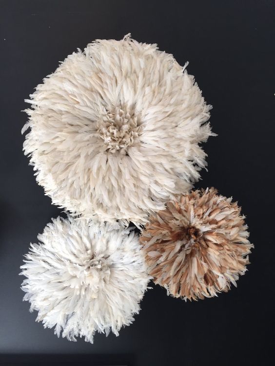 Art is not just canvas and prints – introduce different shapes and materials like metal art, ceramic plates, popular juju hats to create interest and add texture to the wall. Get creative.